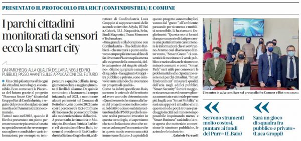 Una città più attenta ai bisogni dei cittadini, tecnologica e sostenibile. Ecco come sarà la Piacenza del futuro grazie al progetto “Piacenza Smart City” ideato dal Gruppo Rict di Confindustria, a seguito del protocollo siglato alcuni mesi fa con l’Amministrazione comunale.
